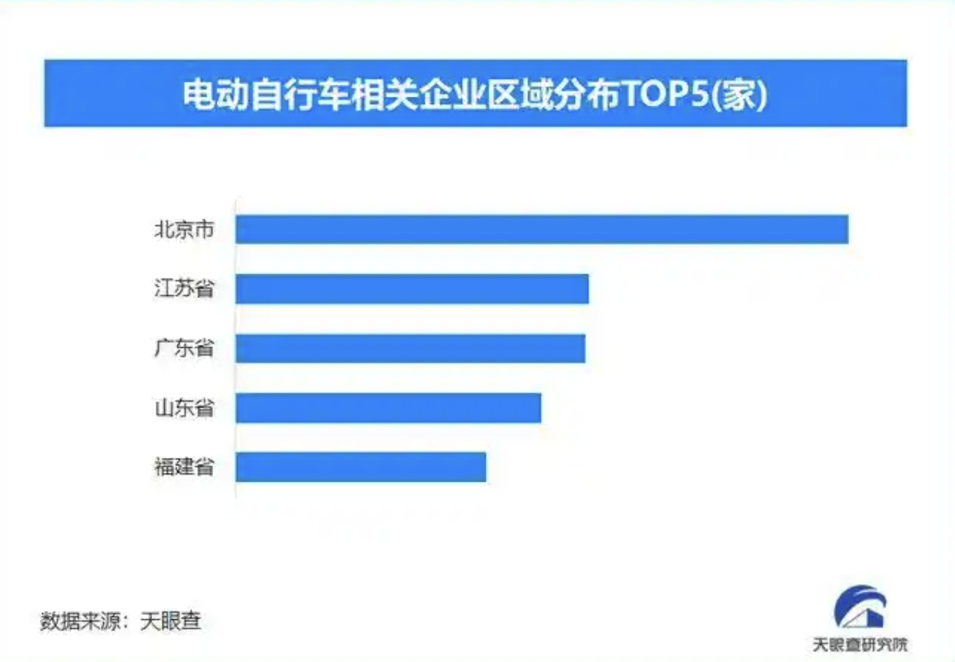 天眼查专业版数据显示,截至目前我国现存在业、存续状态的电动自行车相关企业超97.3万家。从区域分布来看,北京市、江苏省、广东省电动自行车相关企业数量位居前列,三个省市数量总和超过30万家,占企业总数的30.9%。